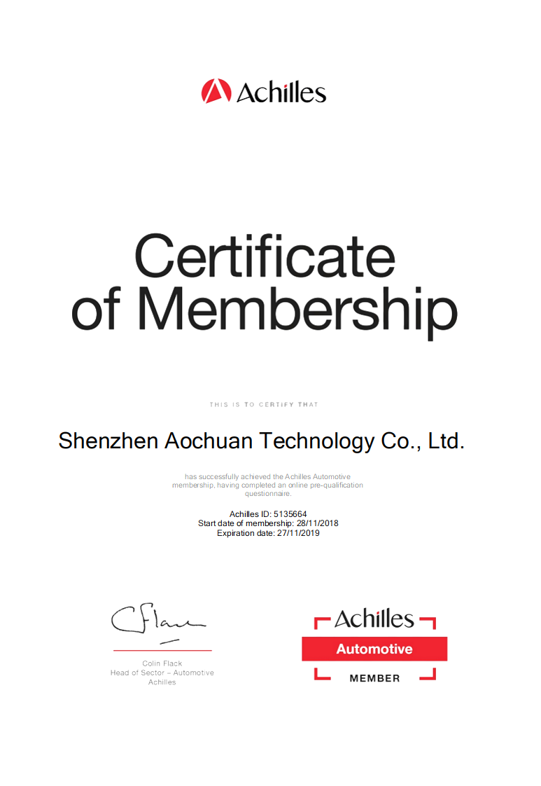 开云电子官方网站最近加入了Achilles Automotive并获得了注册并获得了供应商认可。这确保了HTA已经过预审,并且可以证明我们完全符合汽车行业买家确定的最低标准。它还确保了该领域的买家能够获得我们广泛的制造能力。 意味着AOK成为全球汽车电子供应商更进了一步!