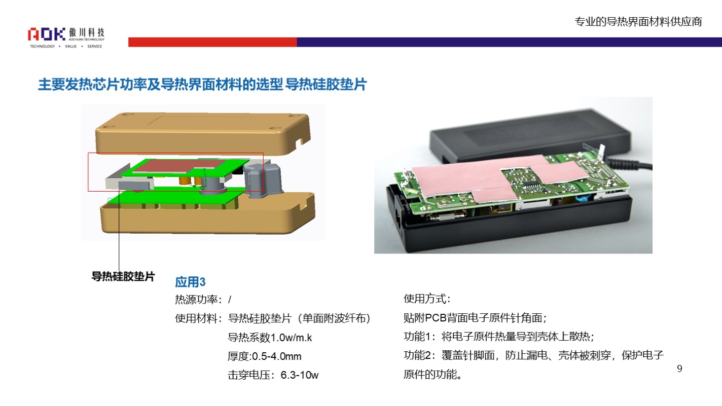 该导热解决方案,可采用傲川TC系列导热硅胶绝缘片,具体应用部位、导热材料选型、使用方式可参考下图: